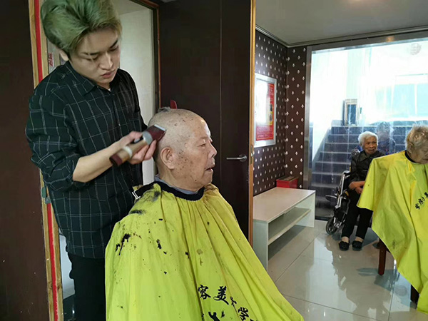 为了让敬老院的老人们漂漂亮亮度过一个中秋节,9月12日上午八号公益志愿者冒雨来到永乐养老公寓为70多名老人理发。